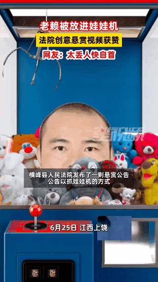 悬赏公告采用了人们熟悉的“抓娃娃机”游戏形式来呈现。冯某的照片被放置在一个虚拟的“娃娃机”内,随后通过操作抓夹,将照片“抓取”并送至出口,随之展示的便是悬赏公告的详细内容。