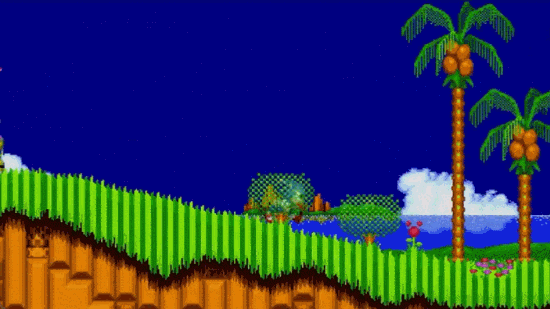 对当时那些玩多了传统横版跳跃以及清版游戏的玩家来说,索尼克高速奔跑带来的爽快体验简直惊为天人。要知道,在当时即便是赛车游戏,也只能是在一条跑道上看着周围的景色慢悠悠地往后退。这些游戏的画面,也差上索尼克一截子。在搭配上它标志性的动感BGM,从视觉和听觉等多个层面,营造出了一场超速行驶的激情体验。“爽快的速度感”就此成为了索尼克的标志。“绿色山丘”也足以和马里奥1-1一样,成为游戏史上的经典。