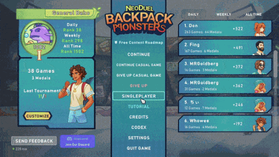 《背包精灵:决斗者》是一款异步多人游戏,玩家可以随时掌控游戏的时间和节奏。需要休息?暂停一下,进度将被保存,你的对手时刻准备迎接你的下一步行动!你可以在任何时间、任何地点享受游戏的乐趣。不论你是准备上班摸鱼,还是下班后能用大段时间畅快地来一把,《背包精灵:决斗者》都能满足你的任何需求。